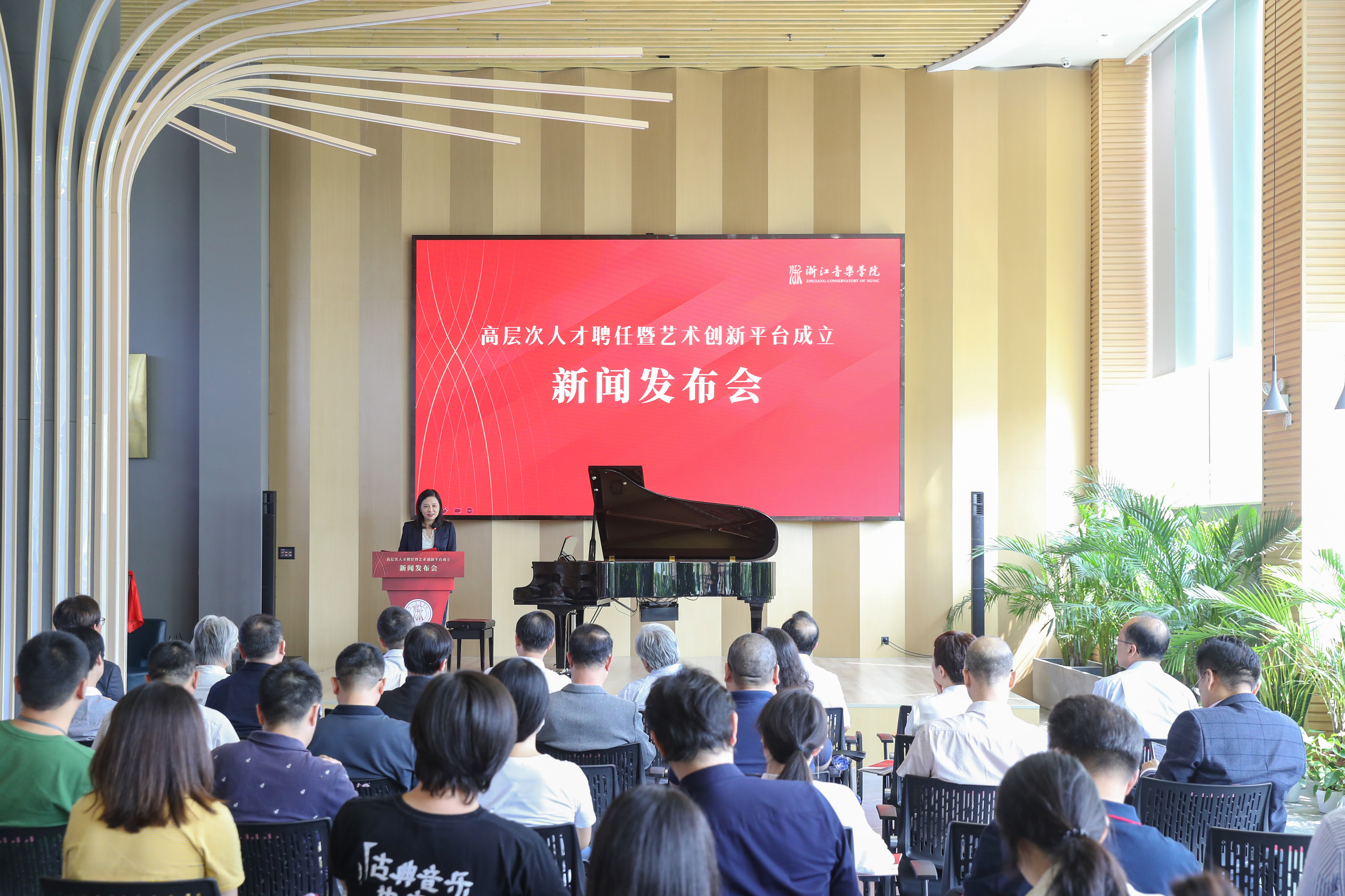 为认真落实中央和省委人才工作重要决策部署,全面推进“聚天下英才而用之”的人才强校战略思想,9月30日上午,学院举办高层次人才聘任暨艺术创新平台成立新闻发布会,宣布了又一批国际顶尖艺术大师加盟、与浙江交响乐团签约共建乐队学院、成立民族室内乐团和室内管弦乐团等一系列重磅消息。省文化和旅游厅一级巡视员柳河、科技与教育处处长郑妮,学院党政领导班子成员干武东、王瑞、蔡亦军、杨九华、奚丽萍、李俊出席发布会。此次受聘的艺术家有著名指挥家张艺,著名女高音歌唱家孙秀苇,瑞士籍著名艺术家、钢琴家、作曲家罗曼·克鲁莫夫,著名作曲家、电子声学音乐专家安承弼,著名指挥家王甫建,青年指挥家焦阳,浙江交响乐团团长郭义江,浙江交响乐团首席何凡亮相发布会。发布会由学院党委副书记蔡亦军主持。