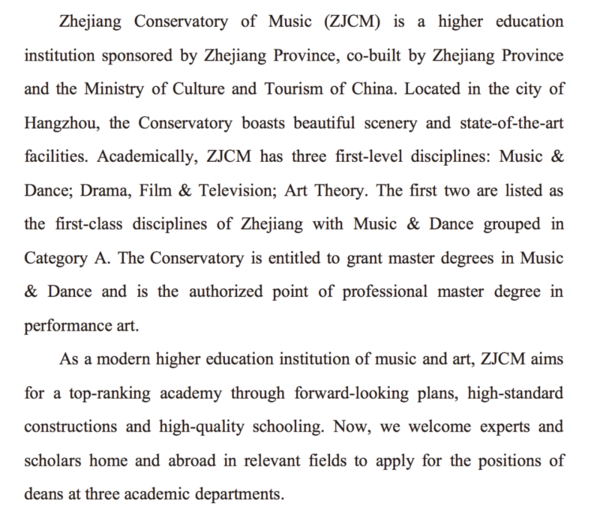 作为一所现代化的音乐艺术大学,学校正以“高水平一流音乐学院”为目标,立足高起点规划、高标准建设和高水平办学,现面向海内外公开招聘二级学院(系)院长、主任,竭诚邀请相关学科领域的专家学者加盟。