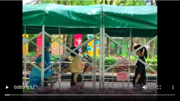 《蓝色多瑙河》《梁祝》《小步舞曲》《天空之城》......当音乐声响起时,排队等候检测的群众和医护人员不再枯燥,音乐的力量鼓舞着每一个人。家住朗郡庭园的徐爷爷一直热衷于学习小提琴,自退休后每天会花几小时和琴友们一起在小区草坪上演奏。对徐爷爷而言,今天的核酸检测仿佛是一个惊喜:“没想到在核酸检测队伍中,竟能听到这么专业的演奏。琴声温暖动人,让大家感觉做核酸也有了仪式感,瞬间放松了下来。”