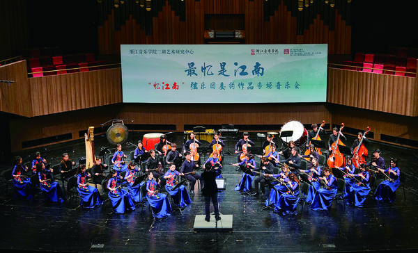 在常人看来,乐团的职责似乎就是日常演出,殊不知有无数作曲家和经典作品正是由乐团委约机制而催生的。作为浙音成立的第一个研究中心,“忆江南”弦乐团自成立之初就向四面八方的作曲家发出邀约。浙音院长王瑞建议乐团委约面向丰富的年龄层次和多元风格,正如他一个月前在讲座《中国民族器乐的人文性与现代性》中所说:“浙音创设民族乐队学院的意义不仅在于培养民族器乐合奏人才,更是为了探求体现中国文化精神和审美特质的民族管弦乐的艺术表达,推动中国民族音乐的创新与发展。”本场音乐会后,王瑞充分肯定了这一系列新作品和乐团的高水准:“乐团的综合表现已经明显展现出浙音国乐教学改革的成效,加强构建符合民族拉弦乐规律的训练体系,要继续推动音乐原创,将中国民族音乐引向世界舞台。”