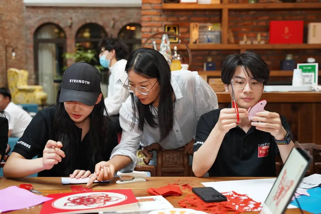 竹编简易飞鸟、鱼篓,剪纸、做香皂,能够跟着四位传承人亲手制作,浙音师生饶有趣味,亲身感受非遗魅力,体验德清独特的民宿文化,他们深深感到这片江南山水不仅文化底蕴浓厚,人与自然和谐相生,且有着投资创业的地理优势,天然宜居,这里根深叶茂,天地万物欣欣向荣!