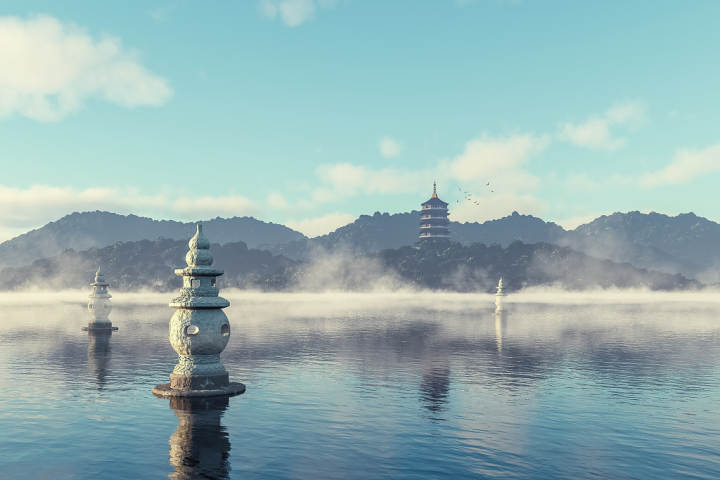 在浙江,一座座城市就像一首首诗,给予了风光明秀的山水一丝丝沁人心腑的诗意,这是浙江相较于其他地方的独特之处。就像是在杭州西湖边,苏轼酒正酣处,一赏水光十色的西湖晴雨,顿时诗情无限,挥笔写下:“欲把西湖比西子,淡妆浓抹总相宜。”也是在衢州三衢山,南宋诗人曾几乘舟在小溪而行,在夏日的绿荫中,听着溪水叮咚,黄鹂轻鸣,不禁以舒畅愉悦的心情写下:“梅子黄时日日晴,小溪泛尽却山行。绿阴不减来时路,添得黄鹂四五声。”