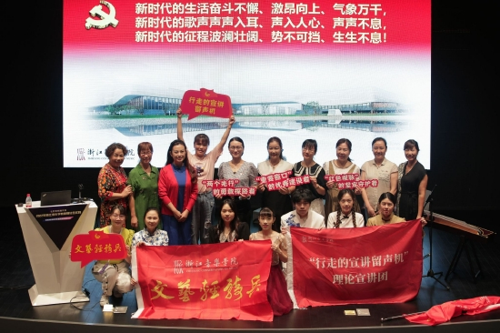 深入贯彻省第十五次党代会精神是浙音“文艺轻骑兵”暑期社会实践的一项重要内容。浙音思政教师、青年团干和学生代表组成了“行走的宣讲留声机”,通过创新理论宣讲形式,深入生活。自暑假以来,“行走的宣讲留声机”先后在杭州、湖州、绍兴、衢州、嘉兴、宁波、丽水等地,面向机关干部、文化干部、中小学生、普通群众开展10余次宣讲,用形式多样的艺术宣讲将党代会精神“声”入人心。