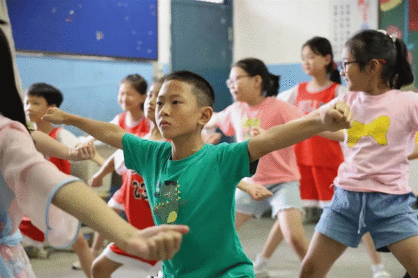 有两支社会实践队来到丽水遂昌开展公益美育活动。其中,一支队伍围绕“助力双减”,面向当地中小学开展舞蹈编创和表演教学;另一支在北界镇中心小学开展“美丽乡村绘蓝图,七彩音乐助共富”社会实践活动,将思政教育和艺术教育相互融合,在为期2周的实践中,开展了合唱、舞蹈、越剧和器乐赏析等各式各样的课程。