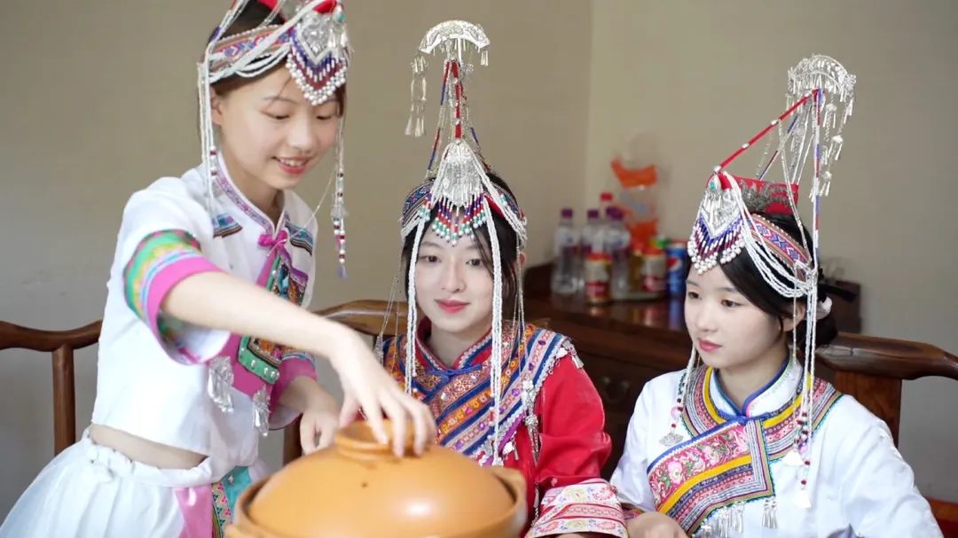 在老师的带领下,同学们穿着畲族服饰,走上梯田,游览村庄,深入调研当地畲族文化、农耕文化。