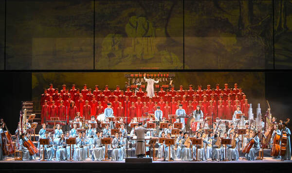 如此,《宋韵·华章》创新形成了一明一暗、一主一辅两条线索,对宋韵文化理念的诠释是明线、对新时代的讴歌是暗线,以此构成跨越千年的时空轴线,让宋韵的“叙事”与华章的“抒怀”交替渗透,互成音乐语境,重塑了一部词画媲美、乐理筑美、意境大美、人文恒美的大型民族音乐精品力作。