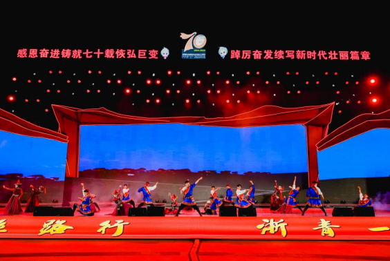 “宋韵丝路行 浙青一家亲”海西蒙古族藏族自治州成立70周年文艺晚会昨天在青海省海西州德令哈市举行。晚会以“山海相连”“大美不言”和“幸福家园”三个篇章,描绘了一幅浙青两省人文相融、民族团结的壮丽画卷,展现了浙江援建青海海西十四载,两地携手并进、共谋发展的深厚情谊。