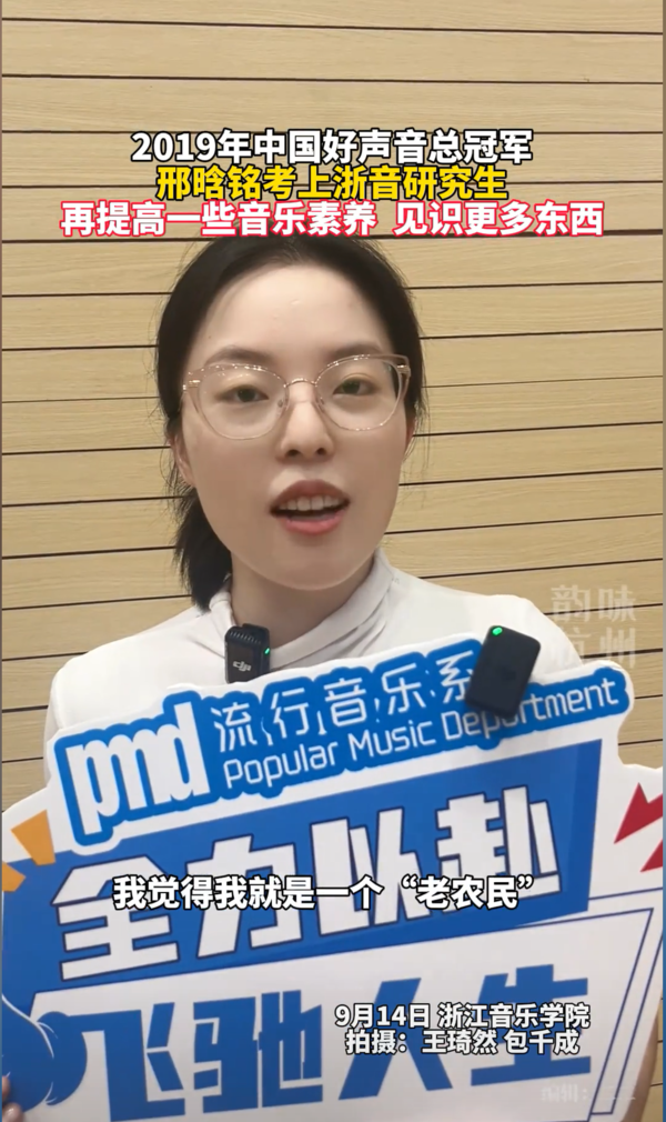 韵味杭州:邢晗铭 #2019年中国好声音总冠军邢晗铭 考上浙音研究生, “参加比赛的时候感觉很不真实” 。