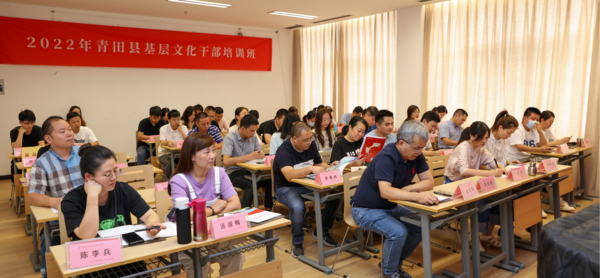 9月22日,“2022年青田县基层文化干部培训班”在学院成功举办。青田县文化和广电旅游体育局副局长王志聪和49名来自青田县的基层文化干部参加了本次培训。