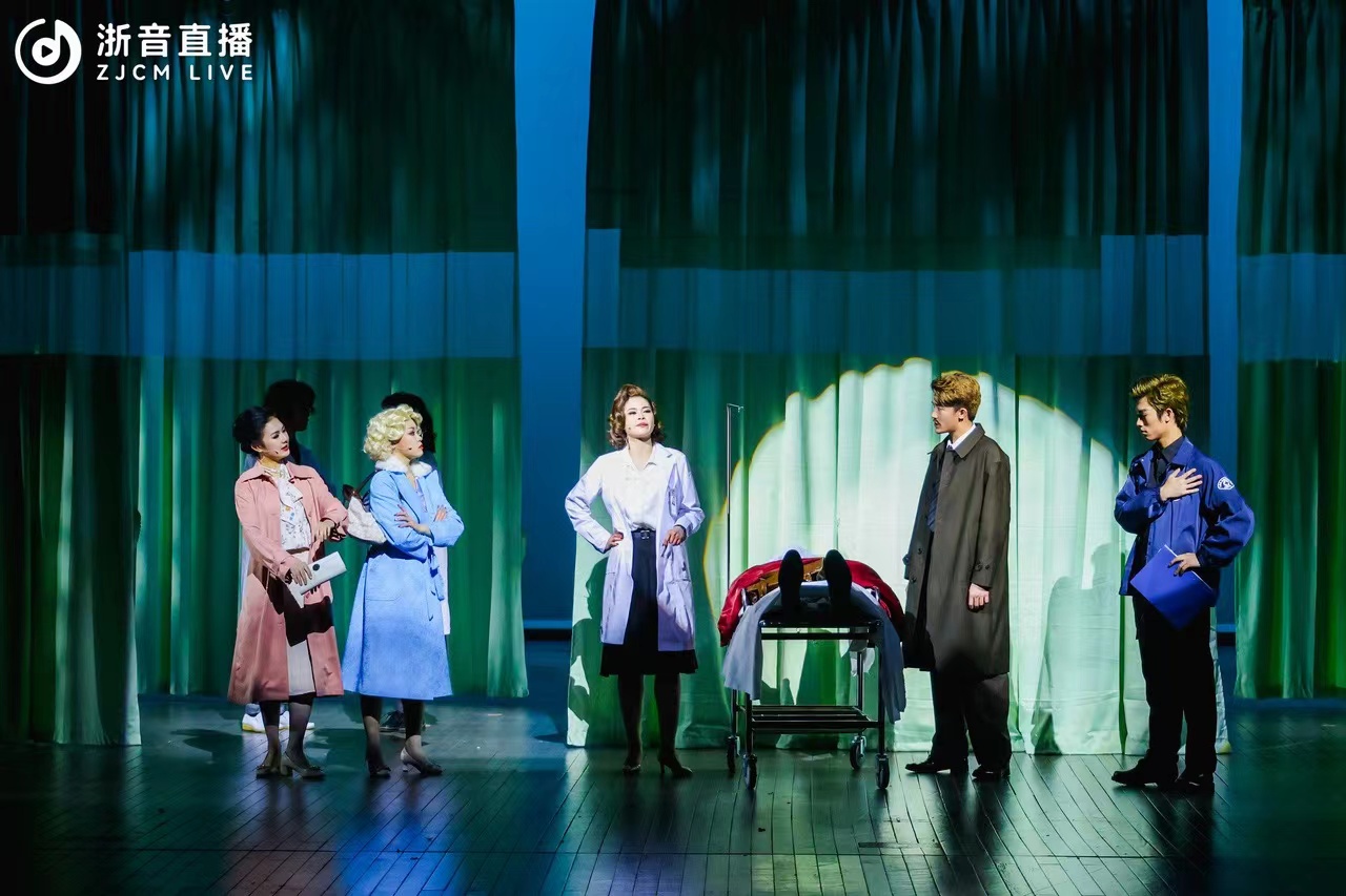《朝九晚五》讲述了20世纪70年代,在职场屡受不公待遇的3个女性员工绑架了总经理,并通过模仿其签名来调整公司的一系列规章制度,最终成功改变公司面貌的故事,由音乐剧2019级毕业生担纲主演和主要演员,音乐剧2022级全班同学联袂助演,影视表演专业部分同学共同协作完成。连续3天的演出座无虚席,同学们形象幽默的人物塑造,精彩优美、富有张力的歌舞演绎,令观众报以热烈的掌声与持续不断的喝彩。本次演出作为“相约浙音”周末音乐会演出之一,以剧照图片形式进行了网络全程直播。