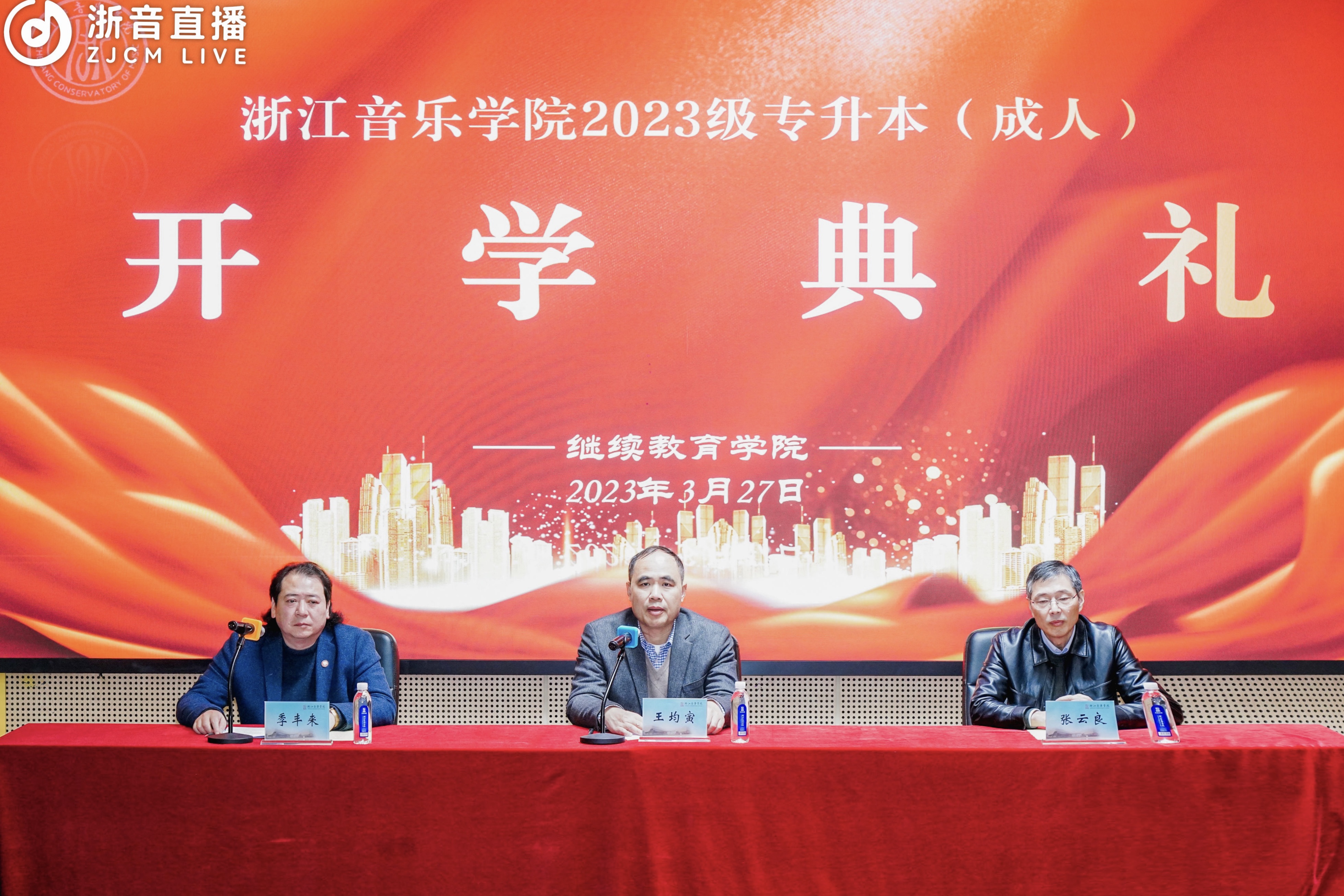 王均寅代表学院致辞。他首先对各位新生成为“浙音人”表示欢迎和祝贺,并详细介绍了学院办学历史、学科建设、师资力量、人才培养、艺术创表等情况。他指出,接受成人高等教育是大家人生旅途中的加油站,学院为大家在政治素养、思想道德和专业技能的提升提供了良好的平台。他希望同学们在欣喜的同时,能够以更高的标准时刻要求自己,胸怀国之大者、锤炼心之善者、秉持行之恕者,继承和发扬“事必尽善”的校训,以“弘毅尚德、博约精艺”为共同价值观,硬核拼搏,投入更多时间和精力在学习上,顺利完成学业;努力追梦,保持更高的人生追求,勤学修身,锻造品性,完善人格,让自己的人生之花盛开得更加灿烂;德艺双优,在知与行的过程中不断完善自身,树立敬畏和感恩之心。