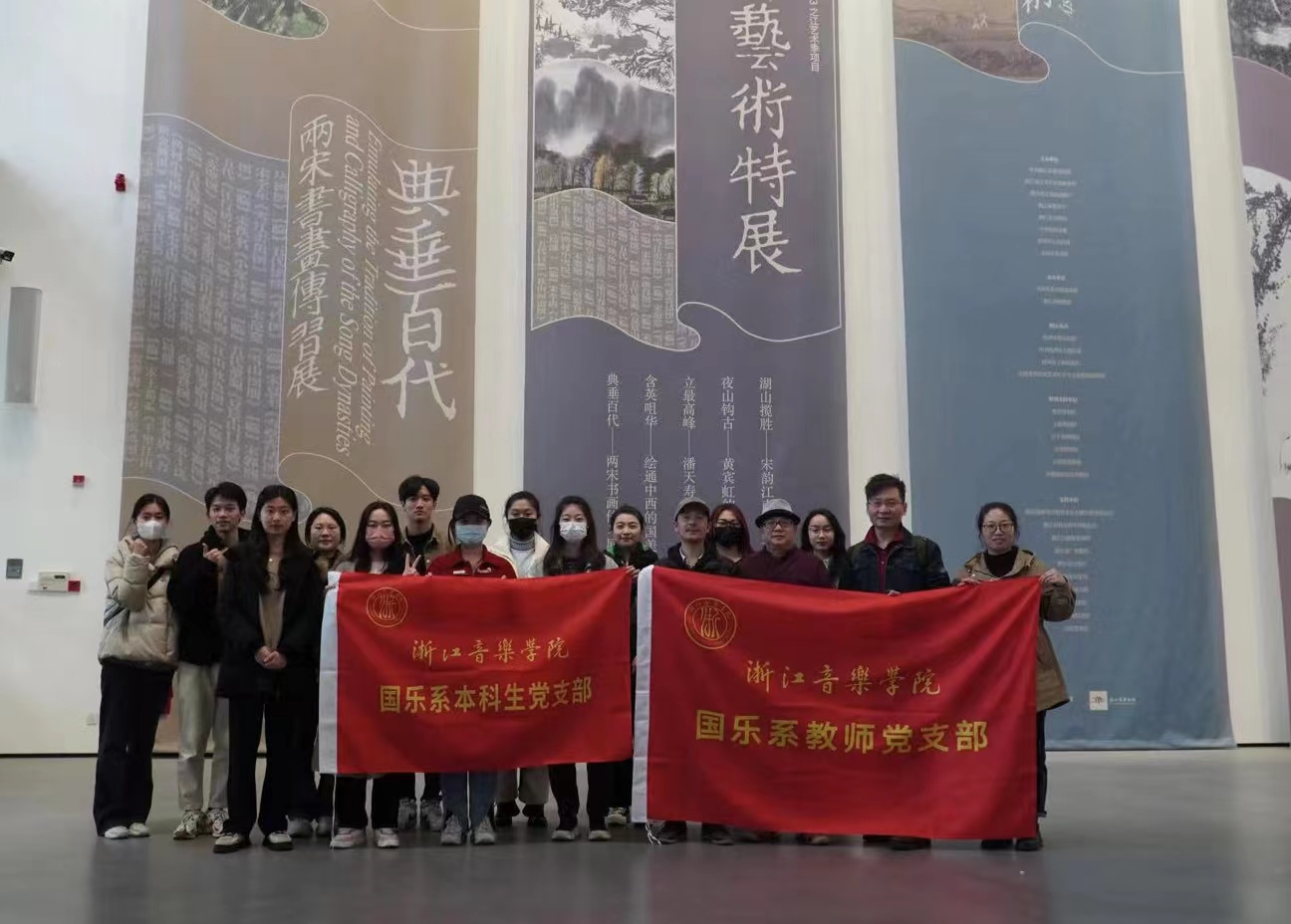 3月29日下午,国乐系党总支开展“弘扬文人精神  品宋韵文化之美”主题党日活动,组织师生党员前往中国美术学院美术馆参观“宋韵今辉”艺术特展。