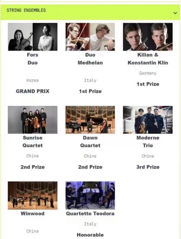 据悉,SCO Organizing Committee线上弦乐比赛(波兰弦乐和室内乐国际音乐大赛)由Elena Aleksiejuk基金会组织,已成功举办三届。此项比赛是第一个为弦乐演奏家而设定的线上国际比赛,是为小提琴、中提琴、大提琴、低音提琴和室内乐合奏,如弦乐四重奏、钢琴三重奏、钢琴五重奏以及所有类型的弦乐合奏举办的国际比赛。参赛选手来自中国、美国、英国、德国、奥地利、法国、意大利、波兰、澳大利亚、韩国等地。评委由来自波兰的8位各个专业的优秀演奏家组成。