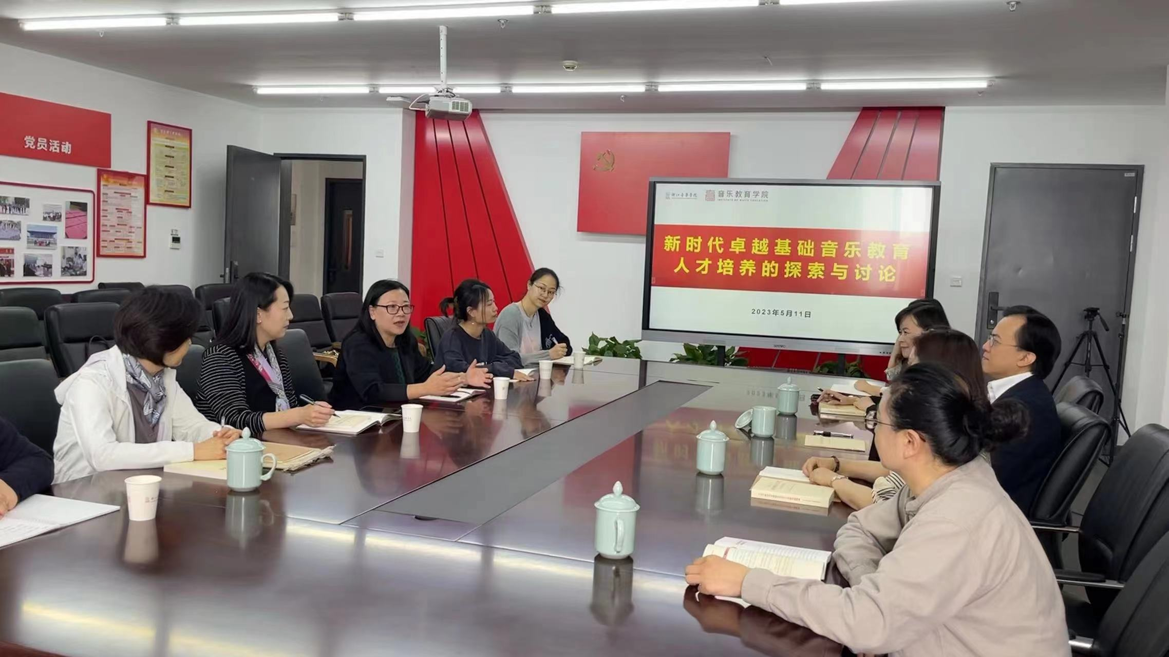 为扎实推进主题教育,大兴调研之风,近日,音乐教育学院会同兄弟院校开展大讨论。上海音乐学院音乐教育系主任唐哲、东北师范大学音乐学院院长刘欣、浙江师范大学艺术学院副院长(主持工作)汪静一等9人齐聚音教学院,以“新时代卓越基础音乐教育人才培养的探索与讨论”为主题开展了座谈交流。会议由音教学院党总支书记杨阳主持。