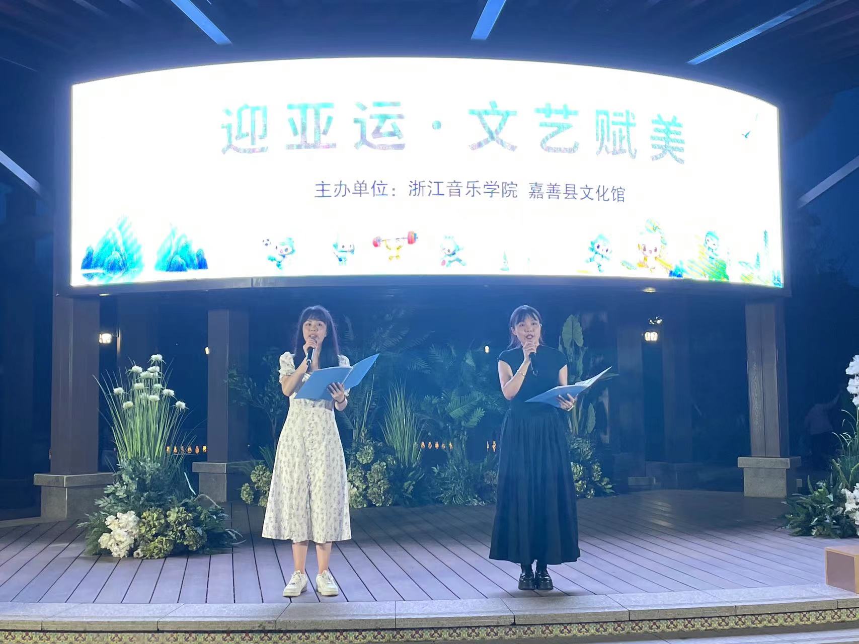 此次活动中,实践团现场聆听了“江南有歌声声唱”金梅作品专场音乐会,通过《船娘谣》《四个姑娘去踏车》等歌曲,近距离感受嘉善田歌研究专家韩金梅老师原创音乐作品的独特魅力。在江南水乡田(山)歌传承发展交流会上,同学们聆听了专家学者对长三角田(山)歌创作、传播、保护、改编、创新等方面的发言,并就嘉善田歌的发展现状、保护传承以及创新发展等问题做了交流探讨。在嘉善姚庄丁栅记忆馆,嘉善田歌省级非遗传承人高建中向实践团成员介绍了田歌基本曲调并示唱了经典田歌《五姑娘》。在嘉善县姚庄镇,同学们了解了嘉兴市非物质文化遗产农民画的发展历程及风格特色,并在老师的指导下拿起画笔,亲身体验农民画创作。在嘉善文化馆,实践团成员走进百姓歌友会声乐培训班,学习群文声乐教学模式,近距离感受基层文化建设的方式方法,并在文化馆声乐教师杨青松的指导下进行了一次群众音乐培训教唱活动;参加了音乐创作座谈会,聆听馆长戴旭锋关于文化馆的工作职能和人才需求的介绍。实践团还调研了西塘古镇,认真了解古镇的发展历程与总书记的殷切嘱托。最后,实践团成员化身美育“文艺轻骑兵”,与嘉善县文化馆声乐老师一起在大众湖滨广场开展了“迎亚运·文艺赴美”主题演出,现场演唱了《我爱你中国》《应声岩》《领航》等耳熟能详的歌曲,用歌声拉近与百姓的距离,共同营造喜迎亚运的浓厚氛围。