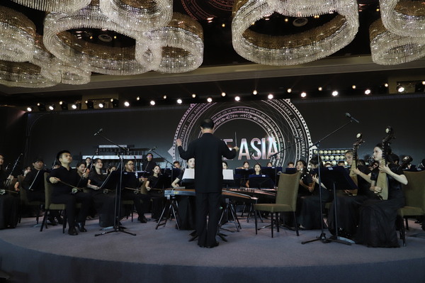 著名指挥家、我院国乐系主任、民族乐队学院及民族室内乐团艺术总监王甫建教授执棒指挥音乐会。音乐会在其编配的同名曲目《杭州十分钟》中拉开序幕,悠扬的编钟,贯穿着中华文明五千年的历史,将泱泱大国的古老文化生动展现在各国友人的面前。端庄的雅乐渲染上江南丝竹的气韵,尽显杭州作为亚运东道主的礼仪与气度。