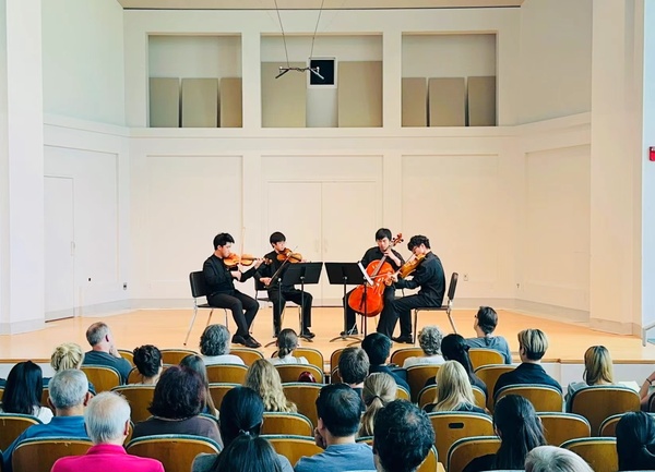 今年7月,作为浙音室内乐学院首届少年班学员的“繁星四重奏”(第一小提琴:徐朗奕,第二小提琴:黄绍煊,中提琴:范书铭,大提琴:赵忆南)赴美国参加由印第安纳大学雅各布音乐学院举办的、为期一个月的夏季弦乐艺术节。此次交流不仅让他们与来自世界各地的音乐大师面对面交流,更展示了浙音国际化办学视野和室内乐学院高级表演人才培养的成果。