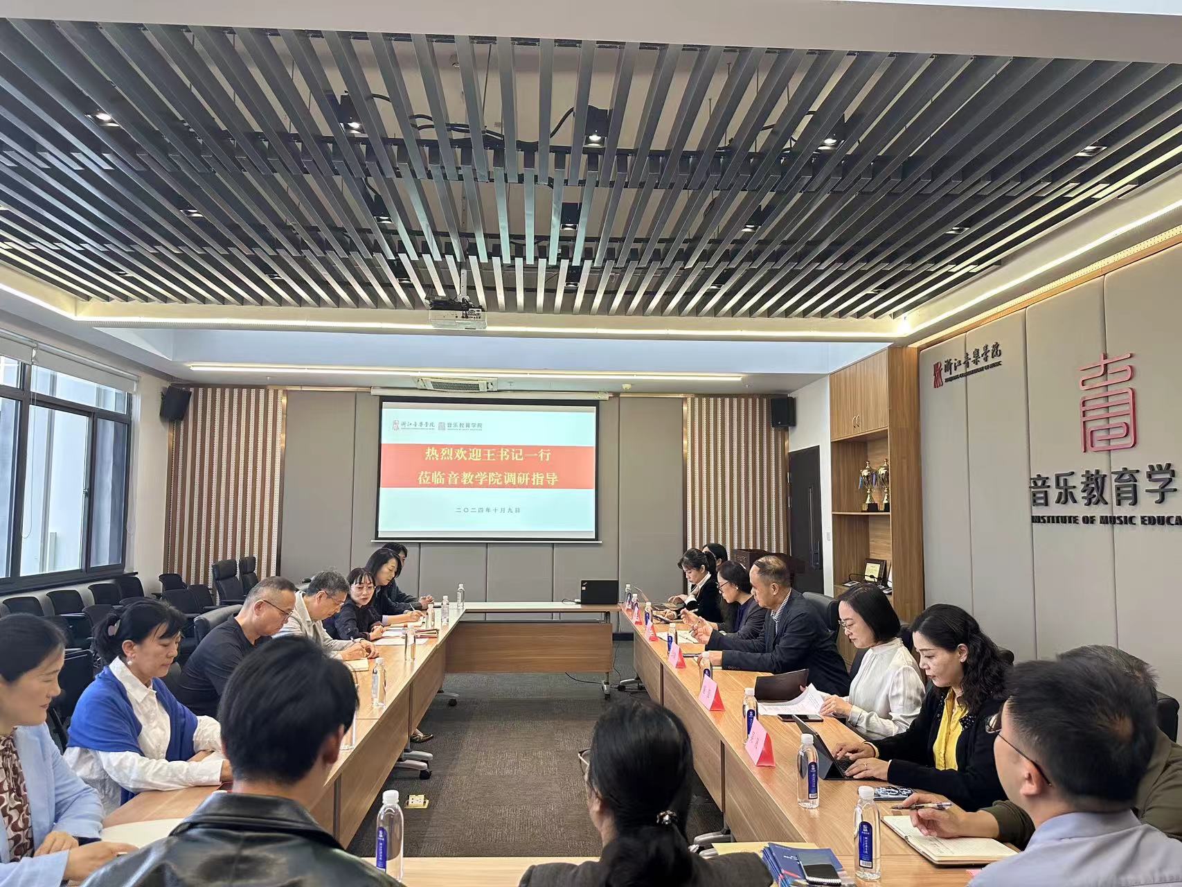10月9日上午,党委副书记王均寅,党委委员、宣传部部长、教师工作部部长施莹一行赴音教学院开展宣传思想和学生工作专题调研指导。学工部、研工部、团委等部门负责人参加调研。音教学院班子成员、专任教师及班主任代表、专兼职辅导员共同参加此次工作会议。