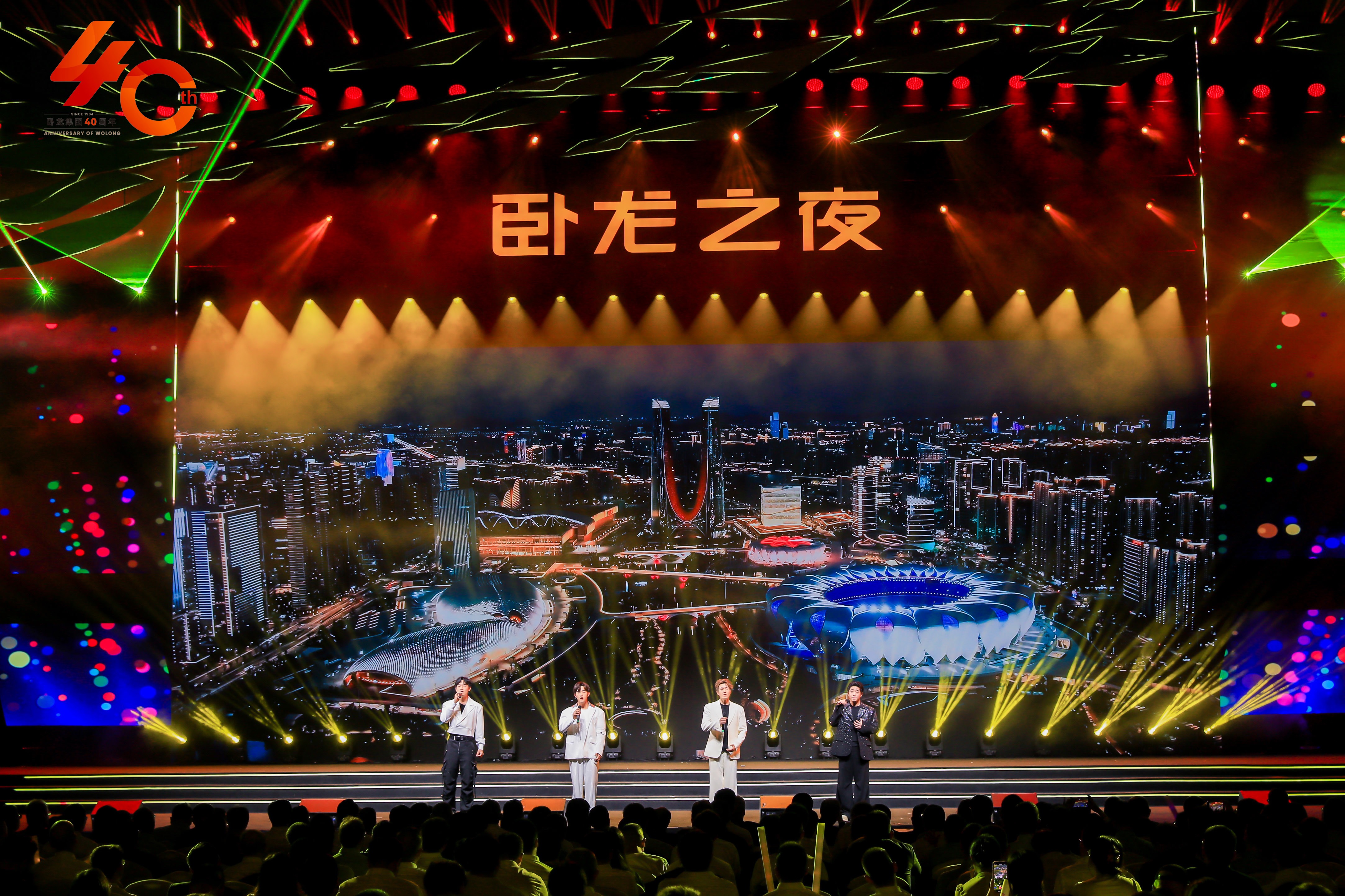 10月12日,卧龙集团四十周年庆典晚会——“卧龙之夜”在绍兴上虞华通体育馆举行,卧龙集团董事局全体以及四千五百余名员工共同欢庆这一具有里程碑意义的时刻。晚会由浙音演艺精心策划并成功执行。