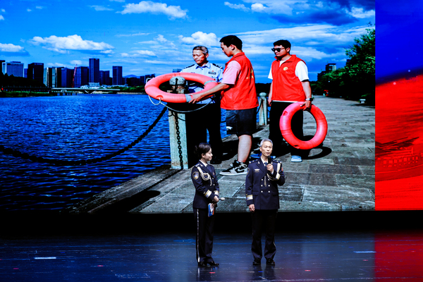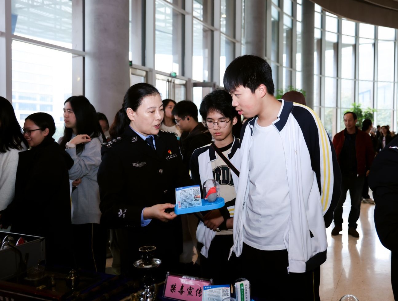 活动开始前,由杭州市公安局西湖分局政治处联合转塘街道派出所在大剧院序厅举行禁毒、反诈、消防及安保知识的宣讲活动。作为一堂特别的“思政课”,本次活动旨在进一步加强爱国主义教育,发挥英雄模范人物的示范引领作用,不断营造见贤思齐、崇尚英雄、争当先进的良好氛围。