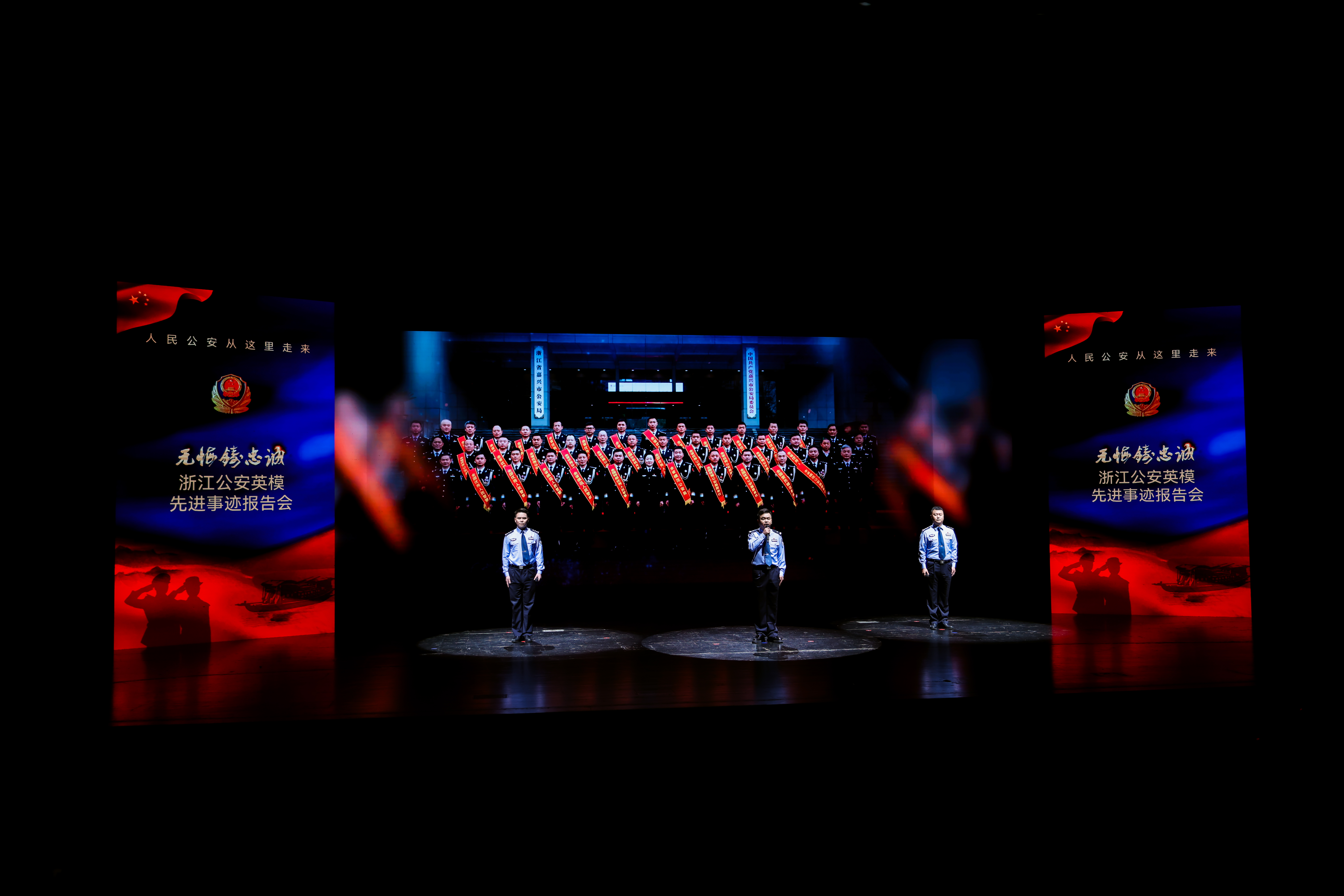 报告会紧扣“共富、共治、生态”三大警务精神主线,9组宣讲成员用一段段感人肺腑的“身边故事、警察故事、初心故事”,讲述了近年来浙江公安战线涌现出的具有典型代表性的公安英模感人事迹。逆行而上、解救群众的台州猫狸岭隧道“8·27”起火事故处置组,“最牛痕迹鉴定辅警”施群峰,在预防网络犯罪、影像、经侦等领域不断发起新攻坚的方瑜淳、翁燕敏、吴敬警,扎根基层、为民服务的罗家岙派出所海岛民警,他们始终把“人民至上”的理念镌刻在实际行动中,用坚守护佑群众,用奋斗回应时代。全国公安一级英模李本春(已故),入警后61年41次跳入江中,挽救43条生命。这样的身影遍布浙江,义乌公安的楼仁斌就是其中一位典型。作为2024“最美基层民警”候选人,9年间他曾救起溺水群众13人、参与救助群众118人,完成了一个又一个救援奇迹。活动现场,楼仁斌分享了自己第一次救人的经历,介绍了水上救生最小作战单元机制,并将新发明的水上救生腰带用法的经验分享给大家。忠诚的使命一棒接一棒,无悔的信念一代接一代。如今,新生代青年民警也站到了最前沿。正如8位95后“警营后浪”朗诵的《青春铸盾》,他们虽岗位各异,却共同肩负着守护浙江平安的重任,以青春之名,书写着忠诚与担当的藏蓝篇章。