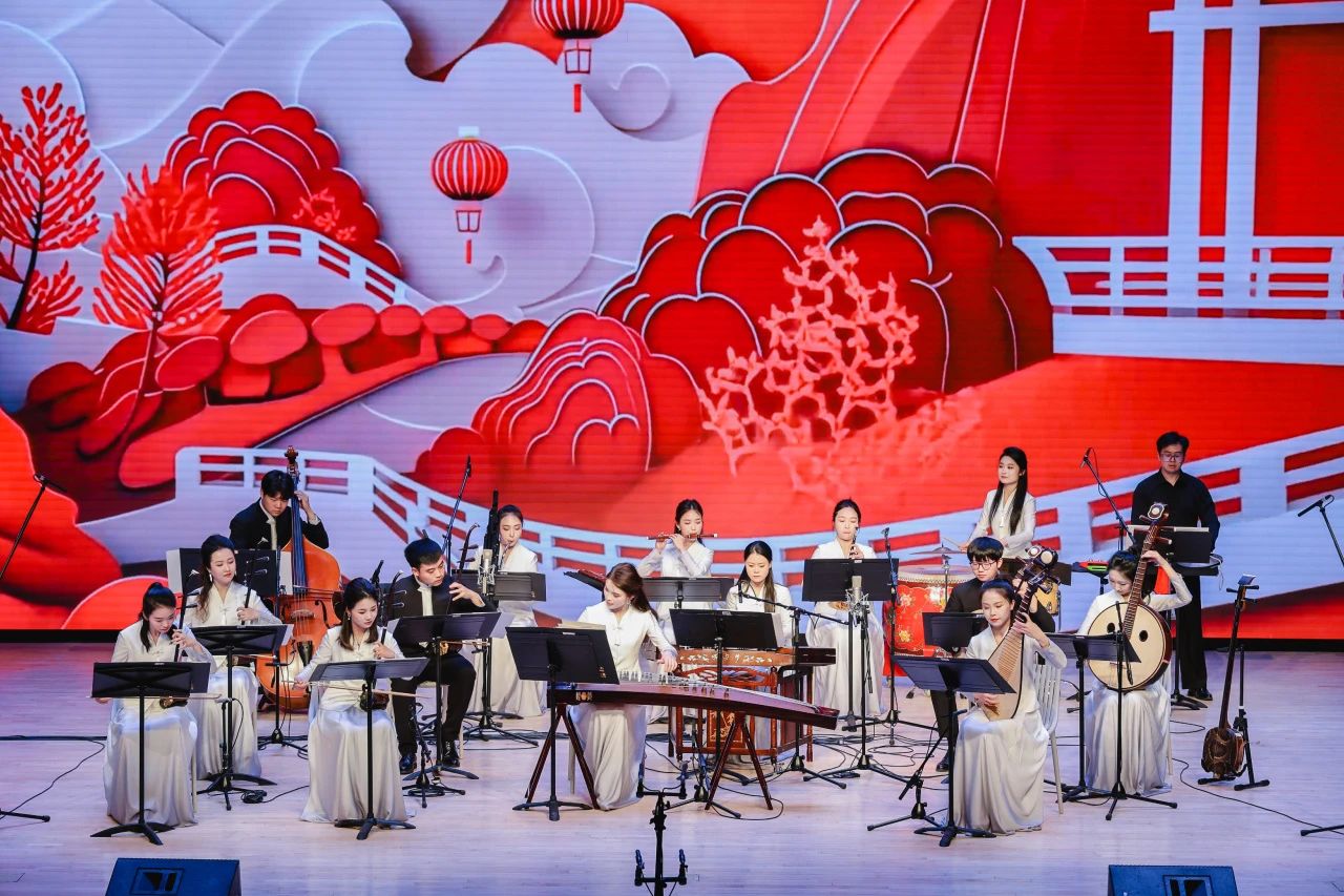 随后,乐团依次演奏了《诗雨江南》、《无锡景》、《杨柳青》、《三五七》等江南经典曲目,仿佛让人置身于烟雨朦胧的江南水乡,旋律似潺潺溪流,淌入人心。