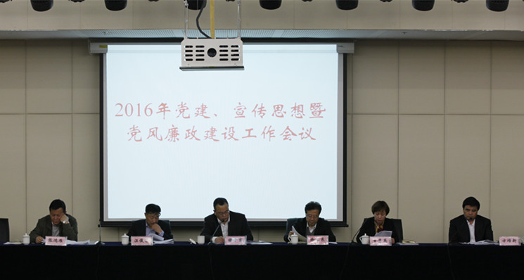 会上,院党委副书记贾秀英、院纪委书记方培新分别对学院2015年宣传思想文化工作和党风廉政建设、反腐败工作进行了总结回顾,并对2016年工作进行部署。褚子育结合学院当前和今后一个时期的重点工作,分别从加强和改善党的领导是新常态下推进学院各项事业发展的根本保证,创新方法和举措扎实推进学院党建工作上新台阶,发挥党的核心作用推动学院校风的全面提升三个方面对为什么要加强党的建设、如何开展学院党建工作以及统一战线工作进行了全面、系统的阐述,并要求要充分发挥各级基层党组织的战斗堡垒作用和党员干部的先锋模范作用,进一步凝聚起广大党员干部加强和改进党的建设,推动主体责任落实,夯实宣传思想工作基础的共识,共同推动学院事业发展取得新的更大成绩。