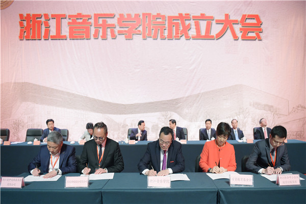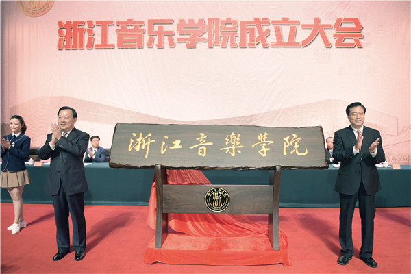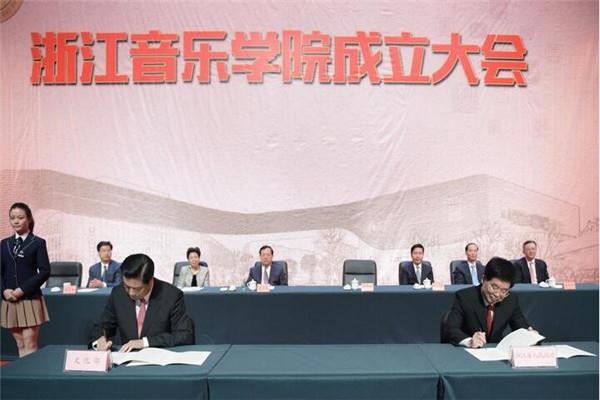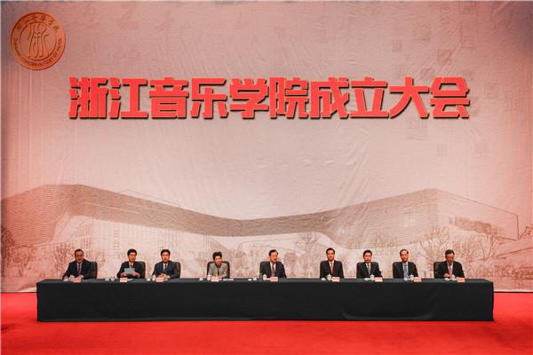 省委书记、省人大常委会主任夏宝龙,文化部副部长董伟,省委常委、宣传部长葛慧君,省委常委、杭州市委书记赵一德,省委常委、秘书长陈金彪,省人大副主任姒健敏,省政协副主席蔡秀军等出席大会,副省长郑继伟主持成立大会,全国高校设置评议委员会专家代表,省市有关领导,奥地利萨尔茨堡莫扎特音乐学院副院长莎拉·路易丝·威尔逊女士,中国音乐家协会和国内各大音乐院校领导,省内各省属高校领导,省内外文艺、教育、商界知名人士,捐赠企业代表及个人、学院全体党政领导、各职能部门负责人、师生代表近千人参加大会。