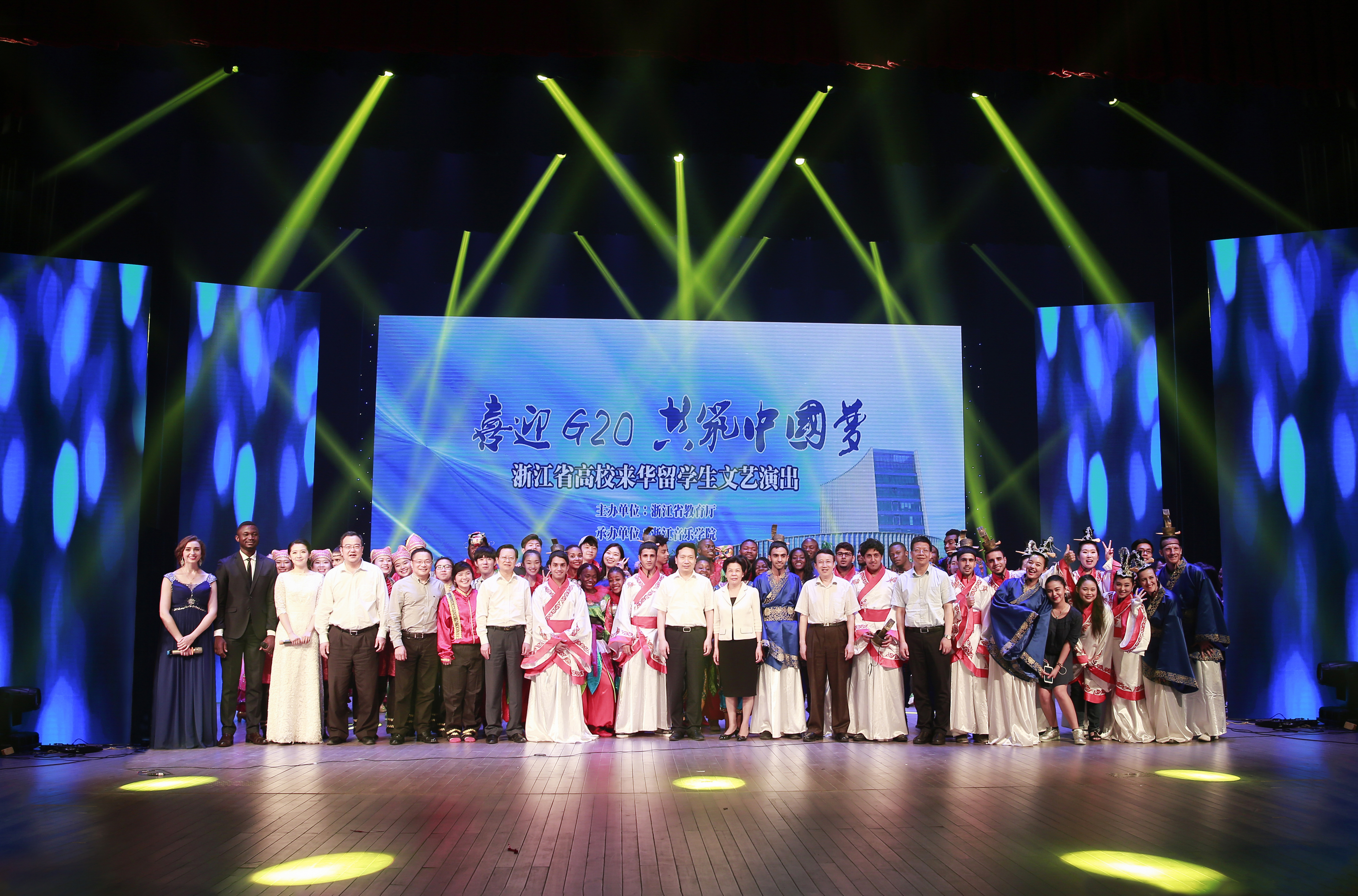 参加演出的浙江省来华外国留学生们以他们特有的艺术形式,讲述杭州故事,传播浙江声音,同时,也代表五洲四海的国际友人表达了对中国杭州即将承办G20国际峰会的美好祝愿,为 “喜迎G20峰会” 营造良好氛围。