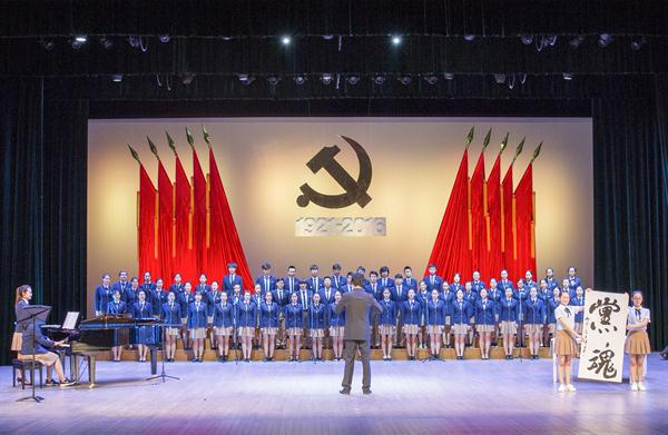 歌声如滚滚红尘,澎湃激昂,流进听者的耳中,直灌人们的心田。一首由作曲与指挥系党总支书记郭鸣作曲、声乐歌剧系党员教师许红霞演唱的《党旗飘飘》唱出了峥嵘岁月,唱出了时代发展,唱出了蓬勃希望。