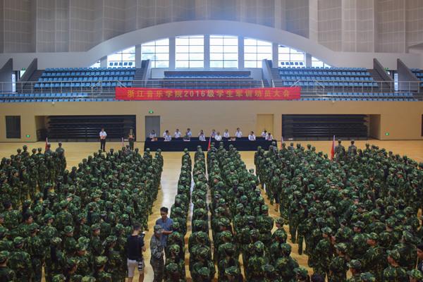 918日上午,我院2016级新生军训动员大会在体育馆隆重举行。学院党委副书记贾秀英,副院长杨九华,中国人民解放军驻杭某部队上尉、军训团团长周宇,有关部门负责人、各系副书记及承训部队教官出席动员大会。大会由学生工作部部长徐其虎主持。
