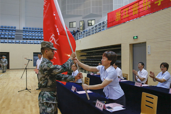 贾秀英代表学院向全体2016级新同学的到来表示热烈的欢迎,向承担此次军训任务的全体官兵表示衷心的感谢和诚挚的问候。她指出,学院高度重视大学生军训工作,把军训作为新生入学后的第一堂课,就是要通过形式多样、内容丰富的军训,加强大学生的爱国主义和社会主义核心价值观教育,强化国防意识,磨练意志品德,促进学生良好行为习惯和学风的养成,打造浙音特色的军训工作品牌。希望同学们艰苦训练,锻造精神,在军事训练中增长才干;严守纪律,崇尚荣誉,在军事训练中磨练意志;居安思危,自立自强,在军事训练中牢固树立国防意识。