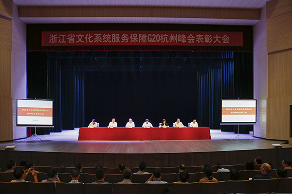 会上,褚子育宣读了浙江省文化厅关于表彰服务保障G20杭州峰会工作先进集体、先进个人的决定。32家单位和部门被授予“浙江省文化系统服务保障G20杭州峰会工作先进集体”,217名同志被授予“浙江省文化系统服务保障G20杭州峰会工作先进个人。