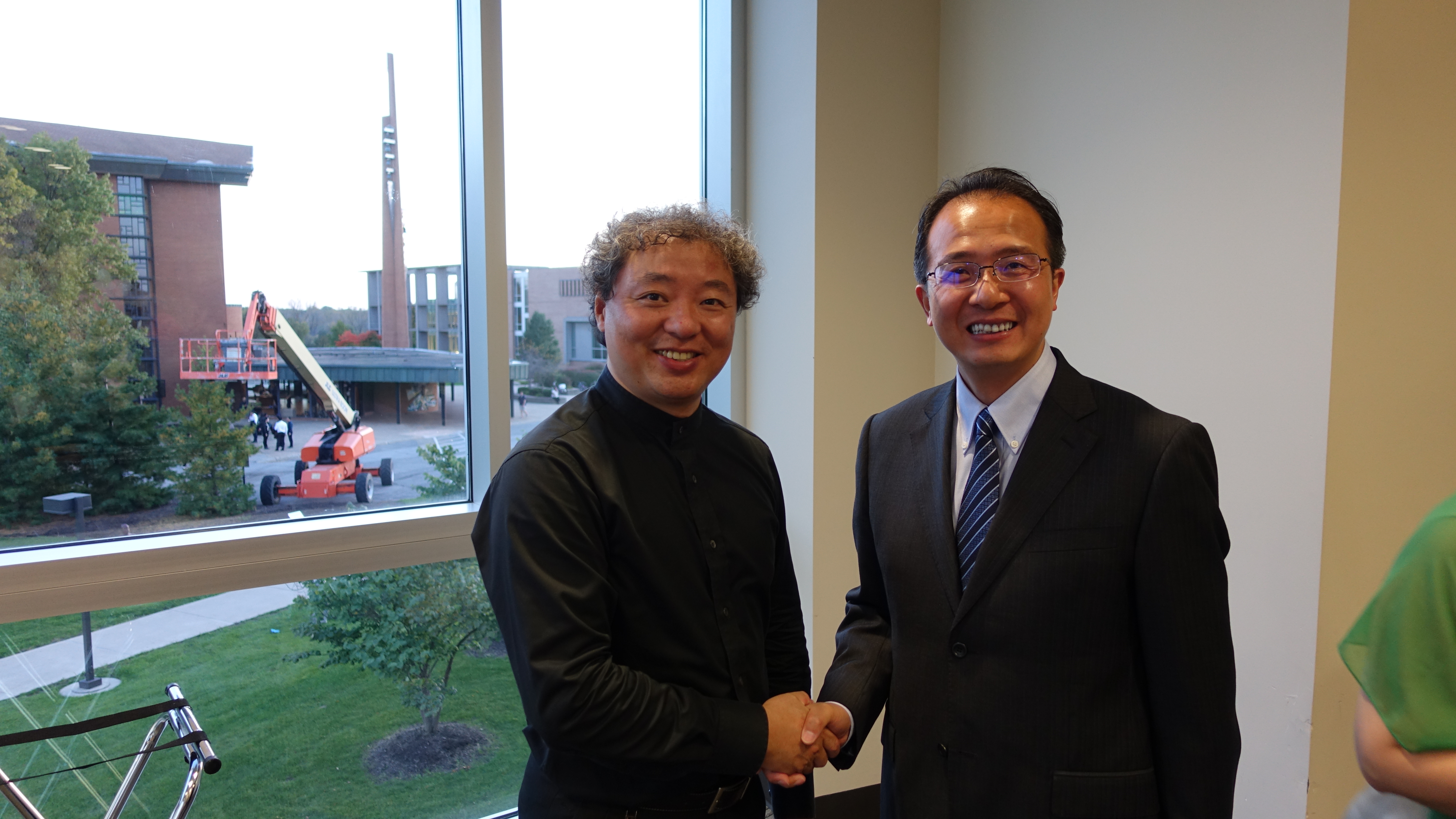 讲学期间,他还作为中方音乐总监及客席指挥参加了在由瓦尔普莱索大学举办的第九届“大湖孔子学院音乐节”闭幕式音乐会。音乐会上,他与大学交响乐团合作演出了德沃夏克第八交响乐。最后,还与来自中国的江苏省民族乐团及美国大湖区6所高中乐团近300名中美艺术家和师生同台联合演出了《瑶族舞曲》。此曲作为艺术节闭幕式音乐会的压轴作品,获得现场观众的热烈掌声。