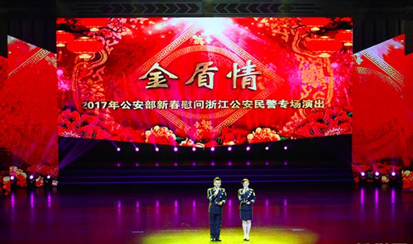 1月20日晚上,“金盾情”——2017公安部新春慰问浙江公安民警专场演出在我院大剧院隆重举行。此次专场演出是由公安部政治部、浙江省公安厅主办,杭州市公安局承办。省市峰会安保组成员单位代表和功模代表、民警代表、公安现役官兵、学警、协辅警、警属、志愿者代表共1000余人观看演出。