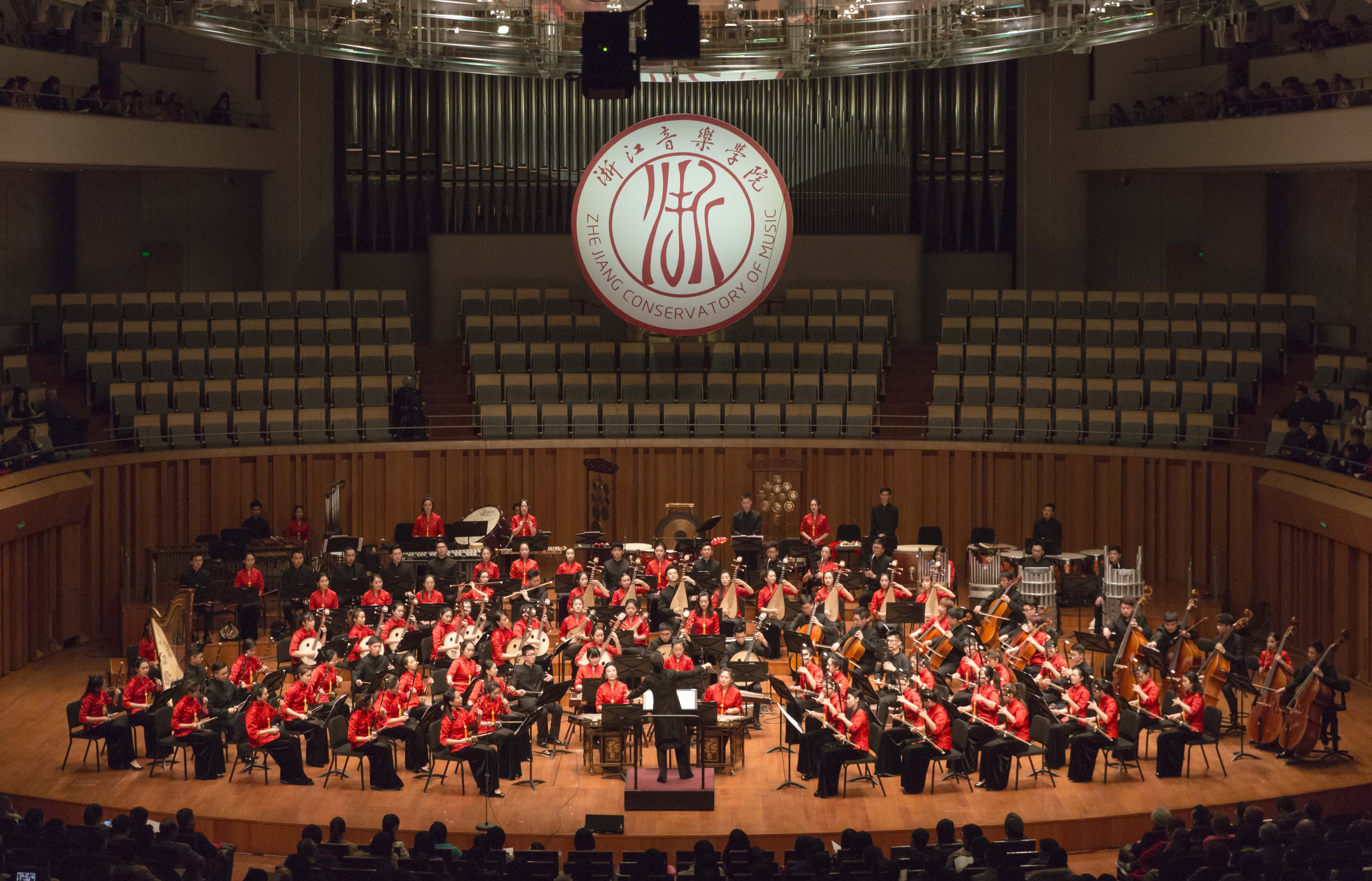 《渔舟凯歌》拉开序幕,这是全场唯一一部作于改革开放前的传统保留曲目,锣鼓喧天的火热节奏奠定了音乐会的喜庆基调。此曲源于浙江民间乐种“舟山锣鼓”,上世纪五十年代初流行于舟山、象山、宁波等地,后经集体创作发展为经典民乐作品《渔舟凯歌》,螺号、云锣等乐器的特色音效共同营造出惊涛拍岸中的渔家风情。