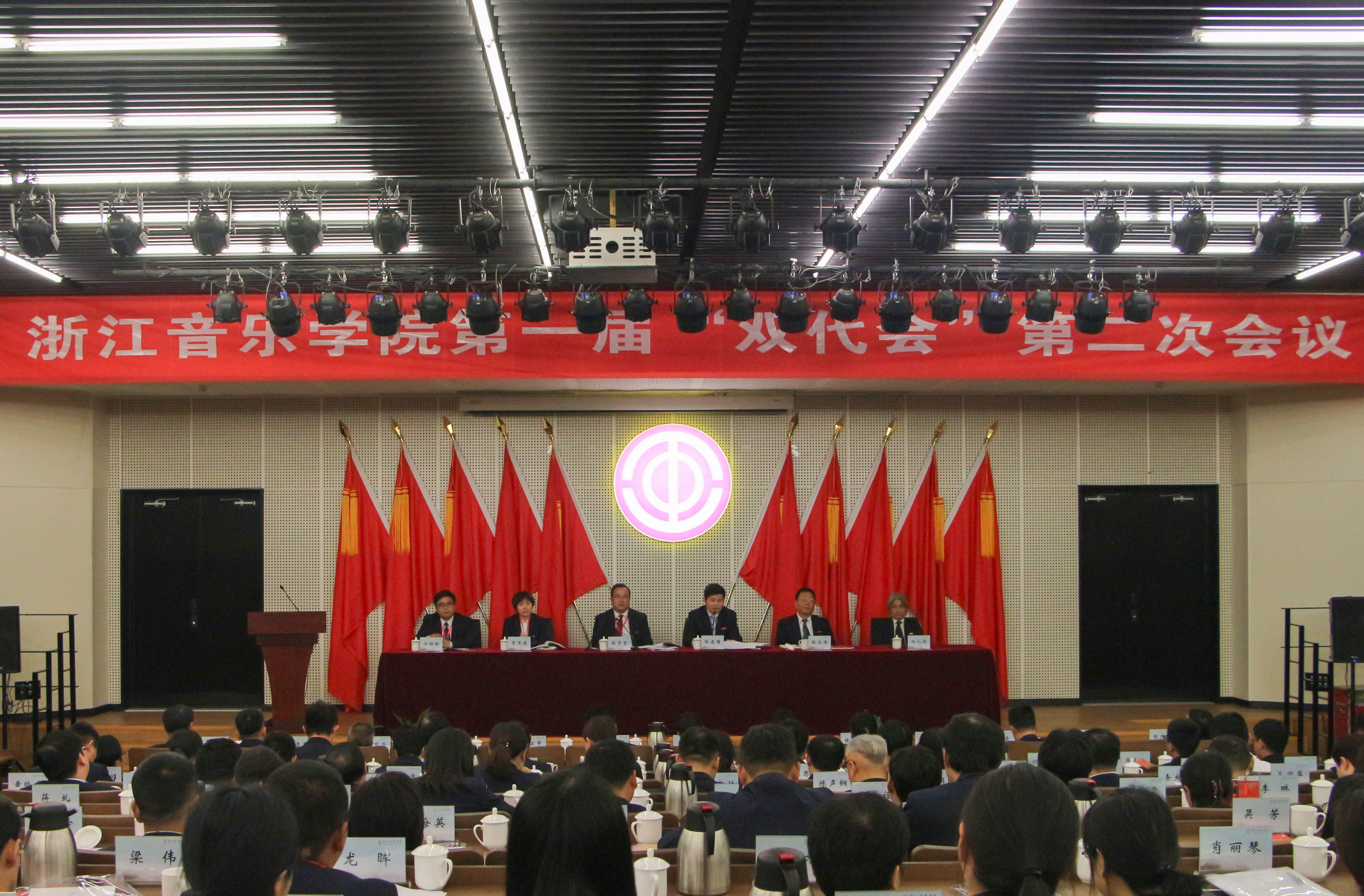 褚子育作总结讲话。他指出,本次会议圆满地完成了各项议程,代表们认真履行职责,集思广义,畅所欲言,体现了浙音教职工顾全局、讲团结、敢担当的精神面貌和事必尽善的事业追求。他希望,学院上下统一思想、凝心聚力,以本次双代会为契机,自觉在思想上、行动上与学院党委保持高度一致,全面推进学院各项事业更快更好发展;聚焦重点、精准发力,在干部管理、校风建设、人才引进、学科专业、教学质量等方面,勇于创新、大胆改革,以更强的力度、更实的举措,取得新突破、新进展、新成效;勇于担当、群策群力,以开阔的视野、昂扬的斗志、扎实的作风,开启二次创业新征程,共同创造学院的美好明天。