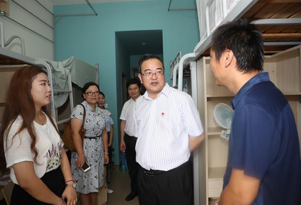 随后,学院党委书记褚子育一行走进宿舍看望新生,与新生们亲切交谈,详细询问他们“来自哪里”、“刚到学院是否适应”,并耐心解答了他们提出的问题。学院的关心让新生们及家长们深深地感受到浙音大家庭的温暖。在看望来自新疆、内蒙古的少数民族新生时,褚子育表示,不论大家来自祖国的何处,来到浙音,就是浙音大家庭的一份子,希望入校后尽快适应大学生活,在未来艺术的道路上越走越远。