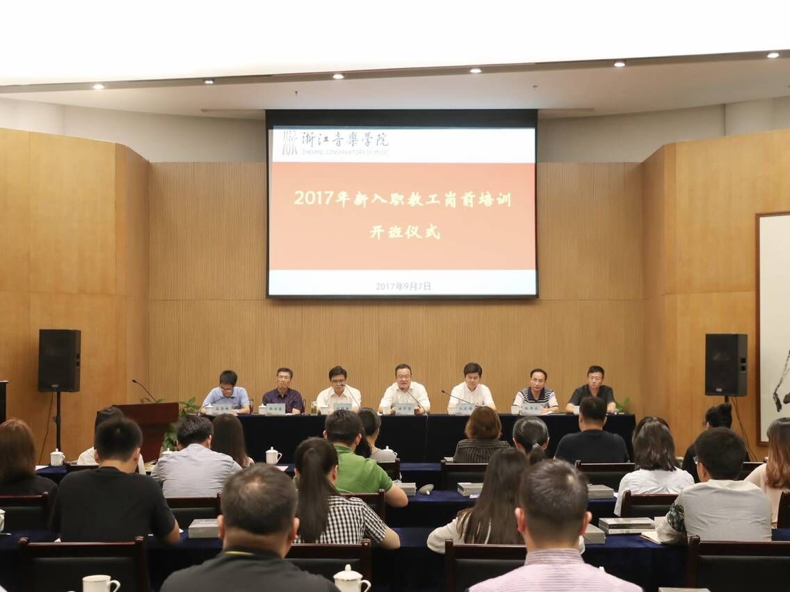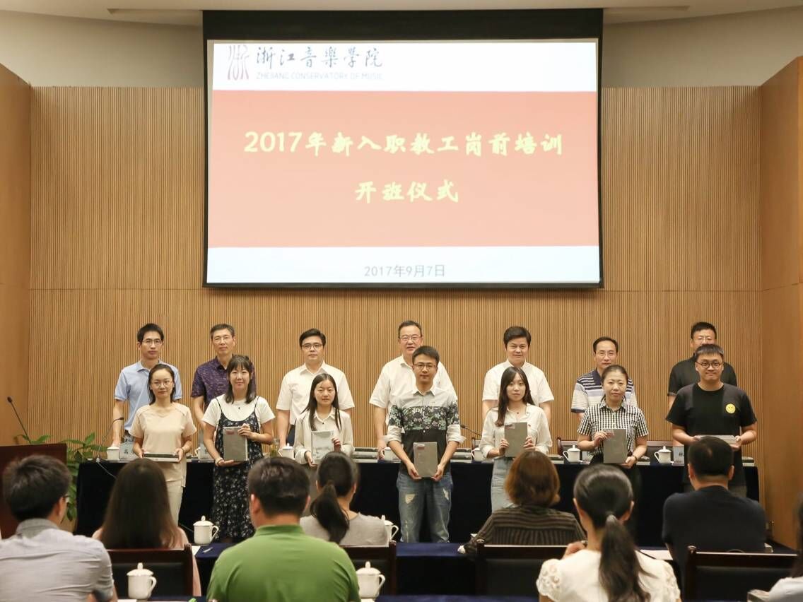 开班仪式上,学院领导为新入职教职工代表颁发校徽、赠送书籍,全体新入职教职工进行了入职宣誓。作曲与指挥系钦丽丽教授、音乐学系杨成秀博士分别代表老、新教师作了表态发言。音乐学系郑祖襄教授、继续教育学院院长周瑞法分别做师德师风与现代教师职业精神和行政办公事务能力培训的专题讲座。