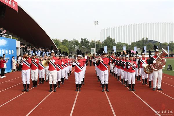 庄严的升旗仪式后,学院党委副书记、副院长张建国致开幕词。他表示,音乐与体育是人类共同的语言,音乐可以陶冶情操,体育可以强健体魄。处在中国特色社会主义新时代,浙音学子不仅要在舞台上奏响动人的乐章,跳出妙曼的舞姿,同样也要在运动场上展现矫健的身姿,跑得更快、跳得更高、投得更远。田径运动会是学院每年一届的重大体育盛事,今年的田径运动会与去年相比,阵容更大、赛程更长、技术更新。运动使人快乐,竞技催人向上,希望运动员能赛出水平、赛出成绩、赛出风格,在赛场上尽情展示浙音人的风采。