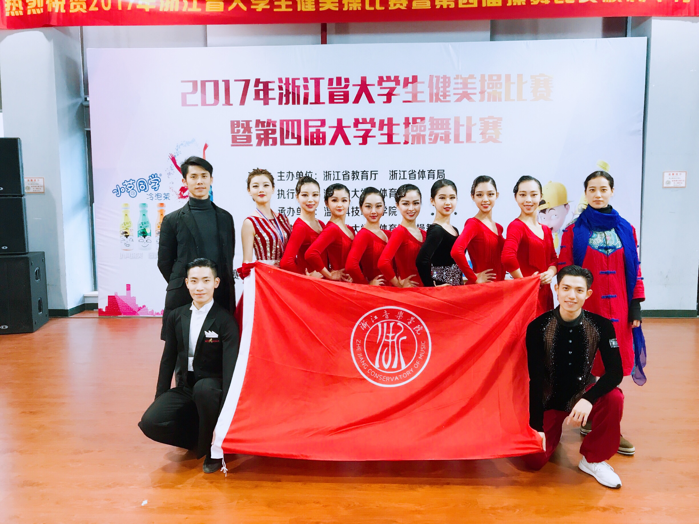 124日,由浙江省教育厅、浙江省体育局主办的2017年浙江省大学生健美操比赛暨第四届大学生操舞锦标赛在温州落下帷幕,来自全省50余所高校共计1862名运动员参加比赛。我院公共基础部王子豪老师带领的由舞蹈系、流行系和继续教育学院共10名学生组成的体育舞蹈队,在体育舞蹈竞赛中斩获2个第一名,2个第二名以及集体项目第五名的好成绩;杨娟花老师带领的由舞蹈系和音教系共13名学生组成的啦啦操队,在比赛中获得1个第一名,2个第二名和2个第三名的好成绩。