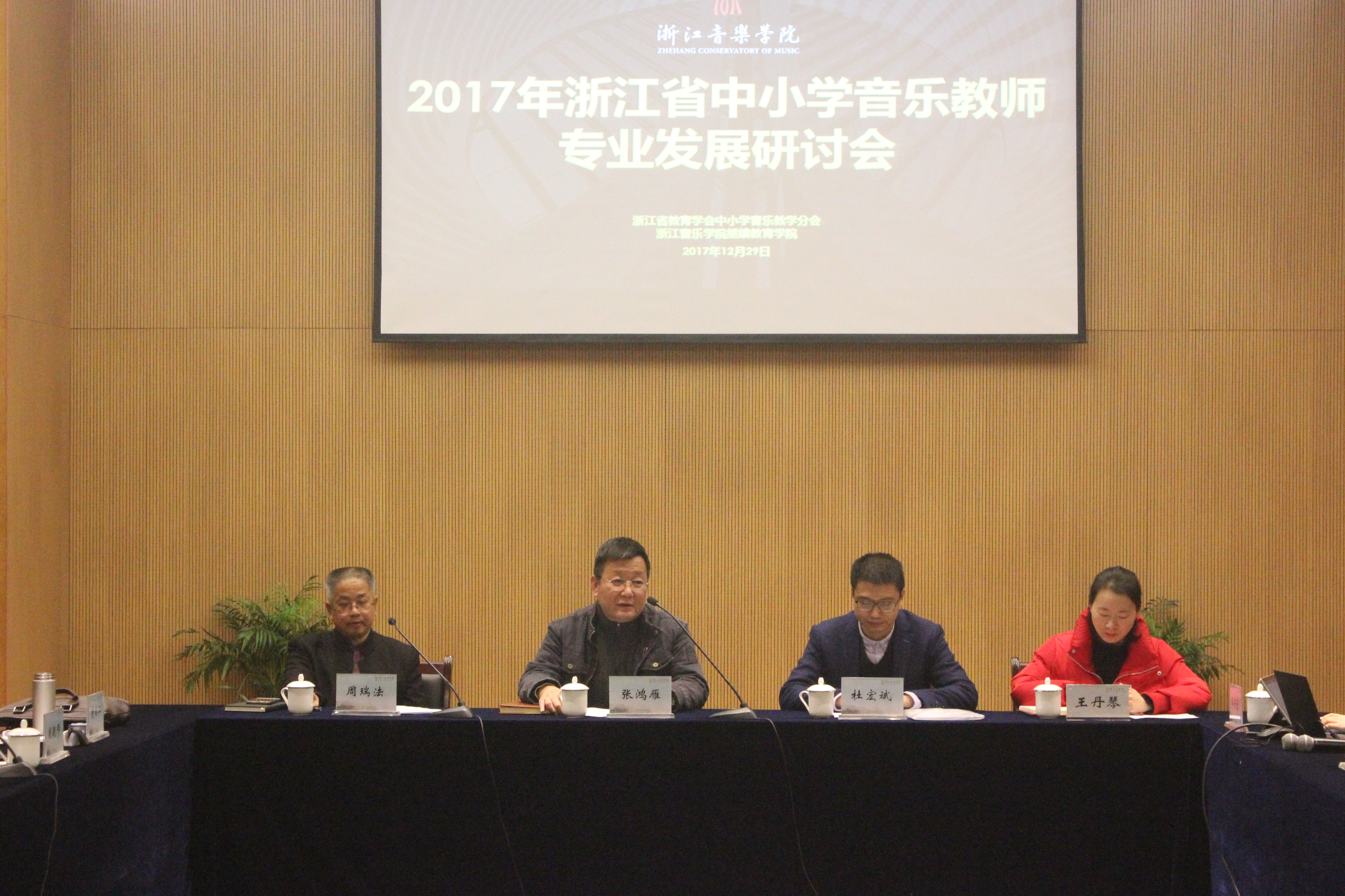 12月29日,2017年浙江省中小学音乐教师专业发展研讨会在我院举行。浙江省音乐教研员杜宏斌、浙江省各市音乐教研员代表,学院副院长张鸿雁、继续教育学院负责人参加会议。