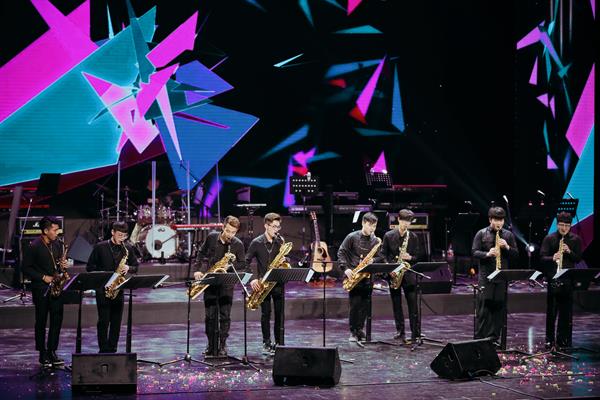 由流行大乐队带来的《sing sing sing》,各类铜管乐器、架子鼓、键盘、吉他、贝斯的合奏,舞台上的乐手们像是音乐精灵,不断演绎着精彩。这带着活泼气息的爵士音乐轻松地活跃起现场气氛,台下的观众纷纷跟随着节奏微微摆动着身体,音乐会气氛瞬间融洽温馨。