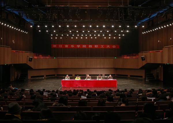 1月12日下午,学院在音乐厅召开2017年年终教职工大会,学院党政领导褚子育、张建国、贾秀英、张鸿雁、杨九华,全体中层干部、教职工参加会议。学院党委书记褚子育主持会议并讲话。