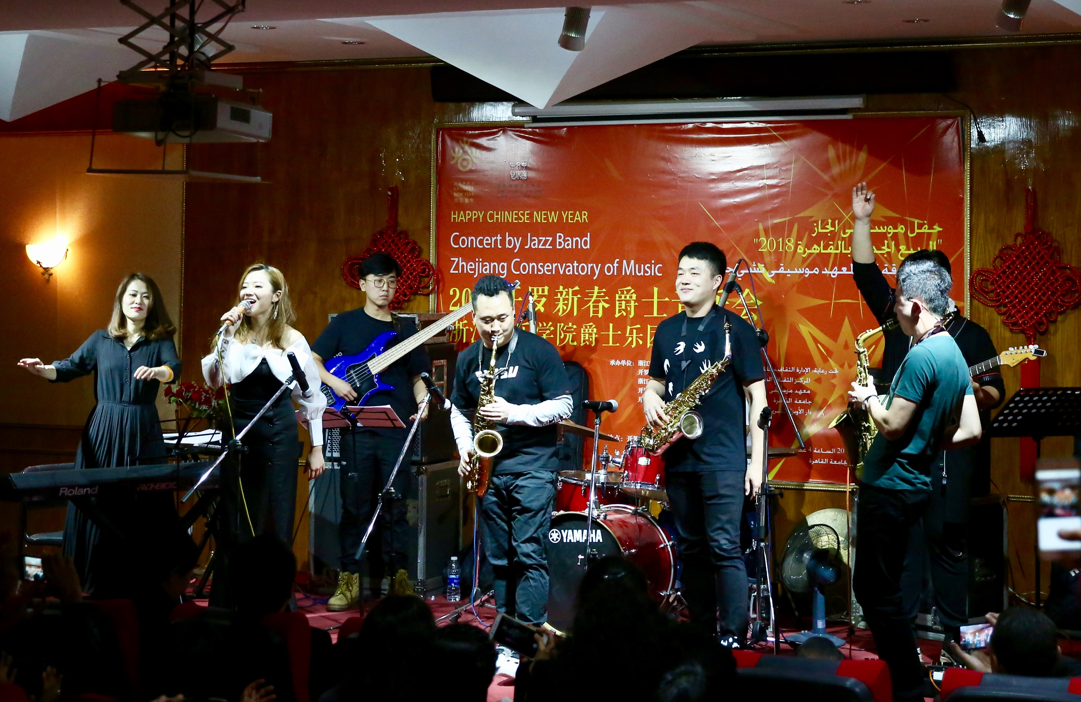 当地时间2月9日下午,学院流行音乐系爵士乐团在埃及开罗大学孔子学院举行专场演出,把节奏强烈的听觉和视觉盛宴带给埃及观众,由此拉开了2018“欢乐春节”走进埃及系列活动的序幕。