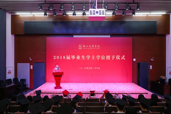 杨九华代表学院向全体毕业生表示最衷心的祝贺。他指出,2018届毕业生是浙音招收的首批专升本学生,是首届浙音毕业生,更是浙音发展的亲历者、参与者、见证者。希望全体毕业生志存高远,直面挑战,脚踏实地,乐于奉献,不忘初心,砥砺奋进,在踏上人生的新征途上,书写人生最为绚丽的篇章,期待毕业生们捷报频传。
