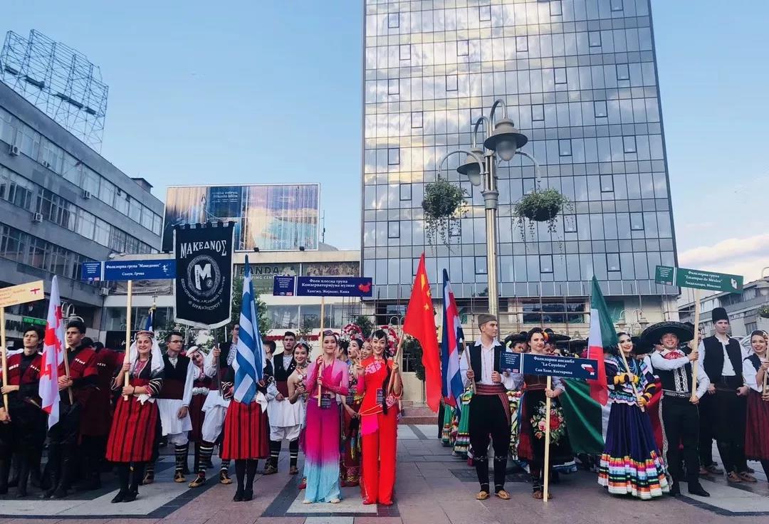 在保加利亚大特尔诺沃,舞蹈团将中国民间舞蹈带到了一个新的国际展现舞台。团员们以高涨的热情参加了“International Folklore Festival ”的游行、演出,并通过舞蹈语汇向世界传递中华民族的传统文化艺术之美。他们先后奔赴了小镇多布里奇、图特拉坎、卡赞勒克等地举行巡演,并与来自世界各国的青年以舞会友,开展艺术的碰撞和文化的交流。