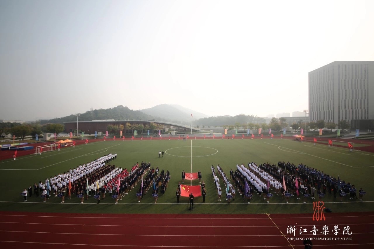 体育场上,横幅悬挂、红旗招展,彰显着运动精神与魅力。伴随着激扬雄壮的进行曲,仪仗队护卫着鲜红的五星红旗正步走过主席台前方,紧随其后的是校旗、红旗方队,旗手们英姿飒爽地步入会场。11个系(部)、研究生处、附属音乐学校组成的学生方队依次入场,精彩的入场表演,是体育场上一道靓丽的风景线。紧随其后的是由16个分工会教师代表组成的教师方队和乐典公司职工的方队进场,大家精神焕发、风采奕奕,展现了浙音教职工的气场与风范。
