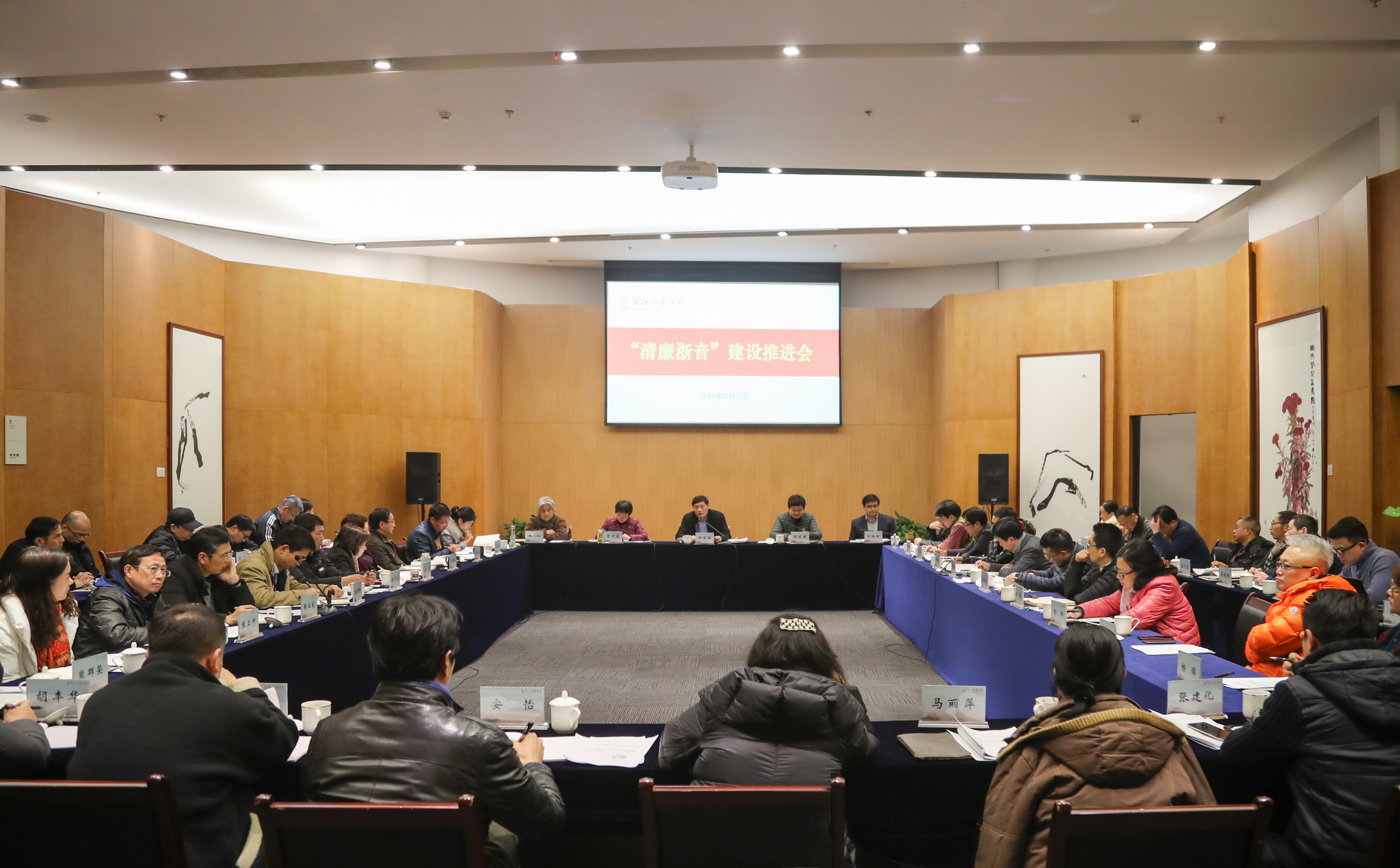 胡建新指出,建设“清廉浙音”是学院党委积极贯彻落实省委关于清廉浙江、清廉学校建设重大决策部署,推进学院全面从严治党的重要抓手和有效载体。今年是学院实施“清廉浙音”建设三年行动方案的开局之年,总体开局良好,“五清工程”受到了省纪委、省文化和旅游厅、省教育厅领导的高度关注。各系(部)、单位、部门一定要不折不扣完成“清廉浙音”建设2018年工作任务,让三年行动方案在开局之年交出满意的成绩单,为明后两年夯实基础,推动学院全面从严治党工作在2020年实现整体提升、整体跨越。针对当前及下一阶段“清廉浙音”建设,胡建新强调,全院上下一定要以习近平新时代中国特色社会主义思想为指导,充分肯定成绩,直面问题,切实增强“清廉浙音”建设的紧迫感和责任感;加强组织领导,突出重点,扎实推进“清廉浙音”建设;强化担当精神,抓好落实,自觉扛起“清廉浙音”建设的政治责任,全面深化“清廉浙音”建设向纵深发展、向系(部)推进,努力开创学院全面从严治党的新局面,为清廉浙江、清廉学校建设,提供浙音的生动实践和满意答卷。