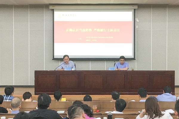 为扎实开展好学院警示教育月“7+7”系列活动,5月22日下午,学院举办党风廉政建设专题培训会,党委委员、纪委书记方培新作专题培训,省纪委省监委派驻省政协机关纪检监察组副组长刘志斌应邀作集体廉政谈话。全体中层领导人员,二级党组织书记、纪检委员,党风廉政建设监督员80余人参加培训。